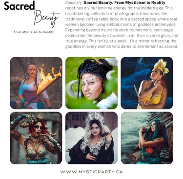 A luxurious hardcover, high-gloss coffee table book filled with 144 pages of breathtaking goddess photo portraits—raw, sensual, and powerful. At a perfect 8 x 8 size, this book invites you to experience the energy behind the deck: the stories, the rituals, the “why,” and the deeper meaning of every goddess. It’s not just a book.