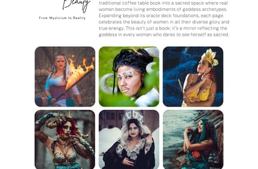 A 6 year journey to create the Sacred beauty oracle deck and art book through photography. Representing women from over 24 different countries, embracing divine energy from various ages, sizes, cultures and genders! In a false world of imagery this is